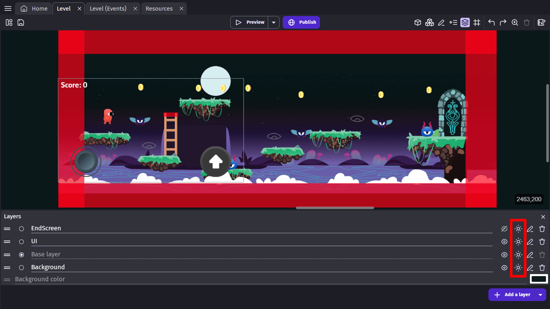 You can add effects to the layers of your scene. These effects allow you to quickly change the atmosphere and rendering of your game. For example, here is the sepia effect added to the isometric-game example: